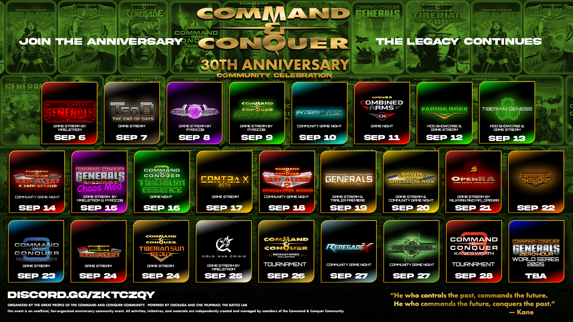 However, it is worth mentioning the beautiful celebration of the 30th anniversary of the Command & Conquer franchise conducted by the people from CnCSaga and all mods and community sites that took part in it. Browse them to find many mod releases, and even an interview with Louis Castle. Although it is worth mentioning that the event is over right now.